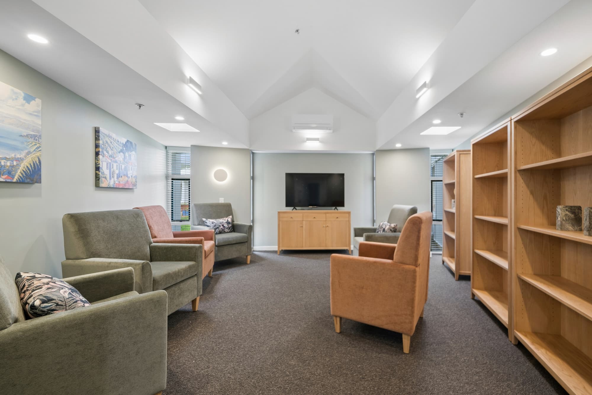 Warm, spacious and truly like home, each Care Suite supports both Rest Home and Hospital level care, offering flexibility as needs change over time. There’s room for personal belongings, and many suites enjoy views of the gardens and surrounding hills.